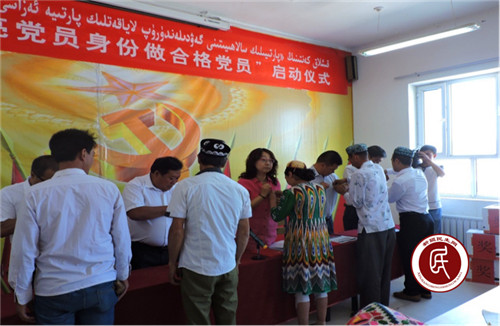 主动亮出身份,喊响“我是党员”口号。6月23日,工作组举行了“亮党员身份做合格党员”启动仪式,全体党员们兴高采烈的互相佩戴了党徽,工作组和村干部到党员家中为其悬挂了“党员家庭”标识牌,这在克什拉克村的历史上还是第一次。喊出“我是党员”口号,公开亮出承诺,既强化了党员的身份意识,增强了作为党组织一员的自豪感、荣誉感;又便于接受广大村民群众和社会各界的监督,增强了为人民服务的责任感、使命感。
