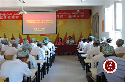 新疆民生网讯 (通讯员 戚铁国)一个支部就是一个堡垒,一名党员就是一面旗帜。基层党组织是实现农村社会稳定和长治久安的重要基础和保障,农村党员干部更是推进农村经济社会快速稳定发展的关键。村子建设的怎么样,群众生活的怎么样,团结稳定工作搞得怎么样,都与基层农村党员作用发挥的好不好直接密切相关。近日,自治区发改委住英吉沙县托普鲁克乡克什拉克村工作组立足强基固本,结合“两学一做”学习教育,开展了一系列丰富多彩的活动,让党员这面旗帜在克什拉克村高高飘扬起来。