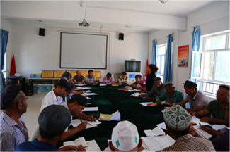 坚持讲党课,开展大讨论。努力践行合格党员新标尺。工作组组长带头讲党课,分别做了题为“充分认识两学一做学习教育重要性”和“以讲政治、有信念为主题,在美丽乡村建设发展中如何做一名合格党员”的党课。进行大讨论,题目为“在农村生产工作中如何做一名合格党员”、“在去极端化深入中党员如何发挥先锋模范作用”。工作组临时党支部支委也按要求讲党课。要求党员要树榜样,当模范,做一个维护社会稳定反对民族分裂的领头羊,做一个推进去极端化促进宗教和谐的领头羊,做一个美丽乡村建设的带头人,做一个庭院美化邻里和谐的带头人。