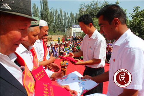 工作组和村党支部精心组织了建党95周年表彰大会,全村男女老少500余人参加了这一激动人心的时刻,就连还在住院治疗伤病的村党支部副书记努尔买买提·阿布拉都不顾家人劝阻,从医院赶回来参加此次表彰大会,表达自己对党的生日的祝福和对工作组的感激之情。鲜艳的五星红旗在村国旗班的护卫下,伴着雄壮的《义勇军进行曲》和红彤彤的旭日冉冉升起,感染着在场的每一个人。大家迎着音乐齐声高唱,行肃穆的注目礼,和煦的阳光温暖了大家的心房,高亢的歌声激荡起共建和谐社会的和声。