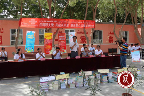 新疆民生网讯 (通讯员 杨喻淋)7月1日,是中国共产党成立95周年生日,在这个特别的日子里,自治区发改委住莎车县艾力西湖镇诺其巴扎(21)村工作组与爱心企业积极协调和支持,在诺其学校隆重举行“爱心书屋”捐赠仪式。