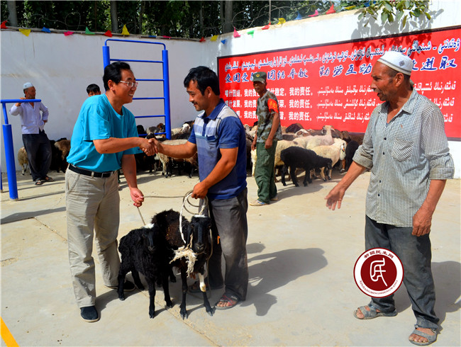 在爱心捐赠仪式上,领到“致富羊”的贫困户,个个笑逐颜开。65岁的大妈苏勒坦汗·艾海提和丈夫身体都不好,家中没有青壮年劳动力,经济十分困难。“住村工作组给村民办了不少好事,今天又联系企业给我们每人赠送2只扶贫羊,我从心底里感谢党和政府,感谢社会上的好心人。”苏勒坦汗·艾海提感激地说道。