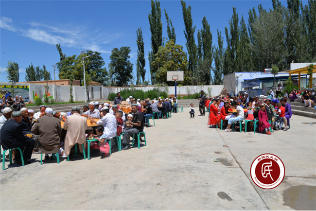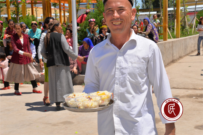 在庆祝活动中,村文艺队的演员们表演了精彩的舞蹈,村里的民间艺人弹唱了优美的歌曲,节目一个比一个精彩,村民们的掌声也一浪高过一浪。随后,在悠扬的旋律中,村里的男女老少们纷纷上场,一起跳起了欢快的萨满舞,将全场气氛推向了高潮。文艺表演结束后,工作组、村干部与村民们共进午餐,香喷喷的抓饭映衬着村民们灿烂的笑脸,让整个肉孜节变得其乐融融。