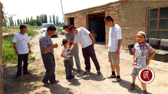 第一站住村工作组就来到村里最远一家人----然依木汗家里。然依木汗一家4口人,由于小儿子哈斯泰尔患有严重的脊柱弯曲变形,让这个本就不富足的家庭陷入贫困。得知这一情况后,工作组自发捐款1200元,协调工作经费1800元,共计3000元捐助给孩子量身定制脊柱矫正器。节日前夕,哈斯泰尔刚刚拿到了新疆医学院制作的矫正器。一进院子,身着矫正器的哈斯泰尔就迎上来拉着工作组组长迟文辉的手,邀请他到家里喝奶茶。迟文辉关切的询问哈斯泰尔矫正器的使用情况,当听到通过1-2年的矫正,孩子的脊柱将得到有效治疗后,迟文辉高兴的对哈斯泰尔说:“工作组的叔叔们是你坚强的后盾,你要把病治好,努力学习,天天向上,将来长大了好好建设自己的家乡。”