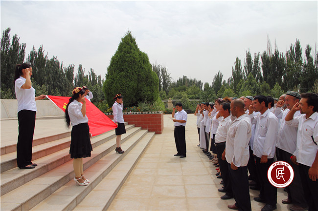 叶城县巴仁乡住该乡阿拉萨依干村工作组组织党员在参观完红色教育基地烈士陵园后重温入党誓词