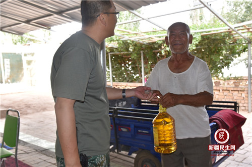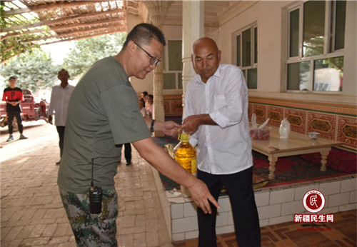 新疆民生网(韩升)2019年8月11日,自治区税务局驻尤古买希勒克(30)村工作队在古尔邦节来临之际,采购清油等慰问品看望村里的11名老党员。